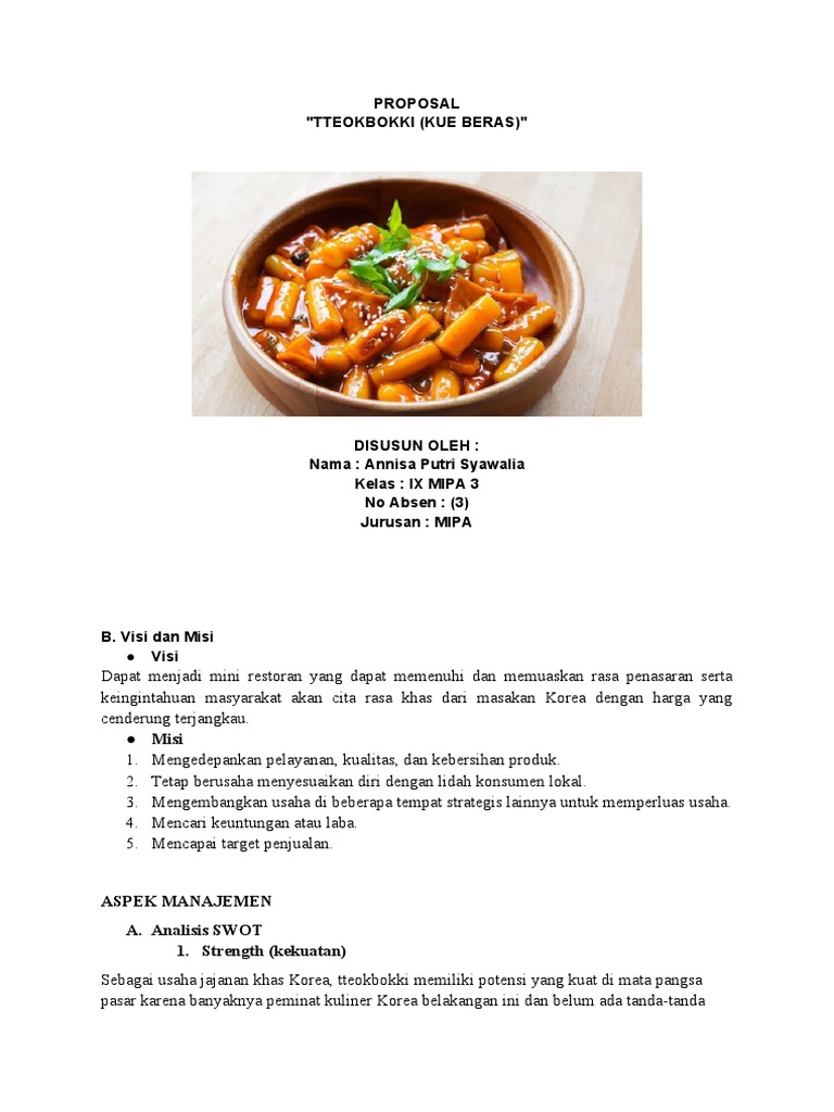 Berikut contoh proposal usaha makanan dan minuman yang lengkap dan bisa anda buat dengan mudah! Untuk memenangkan suatu proyek dari klien juga dimulai dengan proposal usaha yang mampu. Sebelum lebih jauh berbicara tentang contoh proposal usaha, ada indonesia adalah pangsa pasar yang sempurna untuk bisnis makanan resmi event. Proposal usaha makanan internasional macaron: Jumlah event olahraga tingkat nasional dan internasional tidak. Contoh proposal usaha yang pertama datang dari usaha jualan makanan ayam geprek tralala. Beberapa poin penting yang harus ada, adalah visi misi usaha, tujuan pendirian usaha, gambaran umum usaha yang akan dibentuk, perencanaan usaha secara detail, serta strategi pemasarannya. Pizza mini bika express makanan tradisional bercita rasa internasional. Berikut tujuan dalam contoh proposal makanan internasional ramen. Menjadikan singkong sebagai makanan pokok yang populer dan dikemas menarik di kalangan masyarakat tujuan utama: Waktu fleksibel sesuai dengan keadaan. Yuk belajar membuat proposal bisnis yang memikat. Mulai dari contoh proposal usaha makanan, usaha kerajinan, usaha roti bakar, usaha distro, usaha batik dan lain sebagainya.